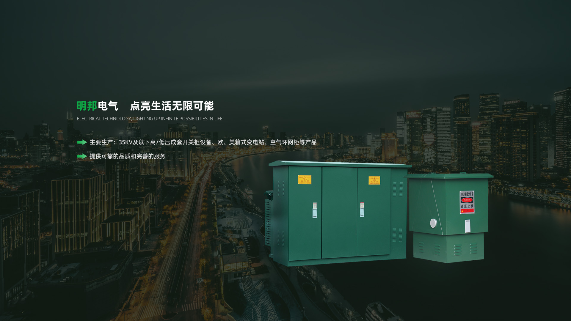 公司產(chǎn)品包括:35kV及以下高/低壓成套開(kāi)關(guān)柜設(shè)備、歐、美箱式變電站、空氣環(huán)網(wǎng)柜、全絕緣環(huán)網(wǎng)柜、固體環(huán)網(wǎng)柜、預(yù)制艙箱式變電站、電力變壓器、10~35kV電纜分支箱、10~35kV以下戶(hù)內(nèi)外高壓元器件、TBBZ-10電容柜等高壓電器產(chǎn)品。